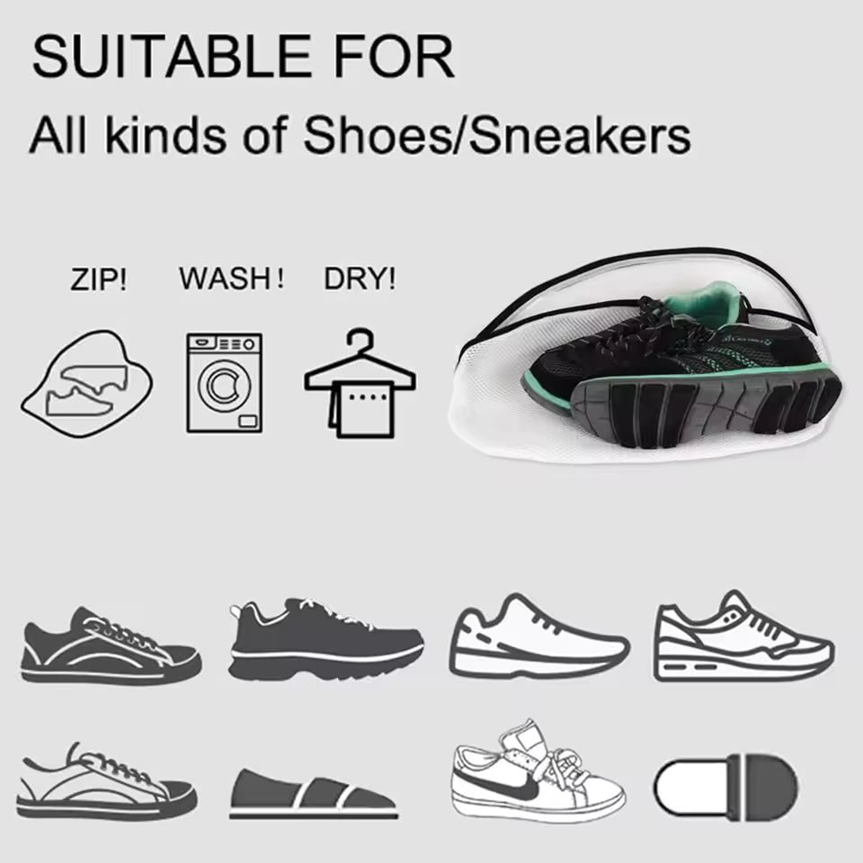 The reinforced zipper and elastic structure protect your shoes from snagging, tangling, deformation, and tearing during wash cycles.